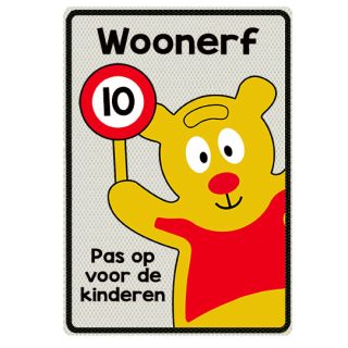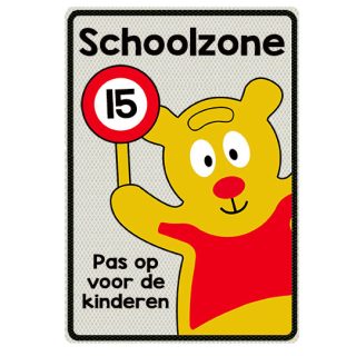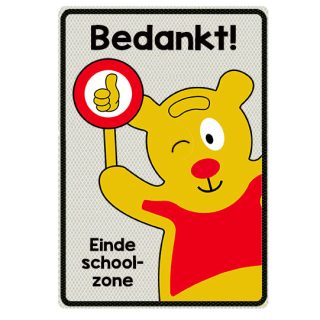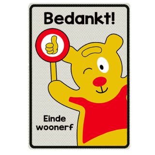 Traffic Teddy ™ met een knipoog en een duim omhoog als dank voor het houden aan de maximum snelheid. Aluminium tekstbord met klasse 3 reflectiesticker.